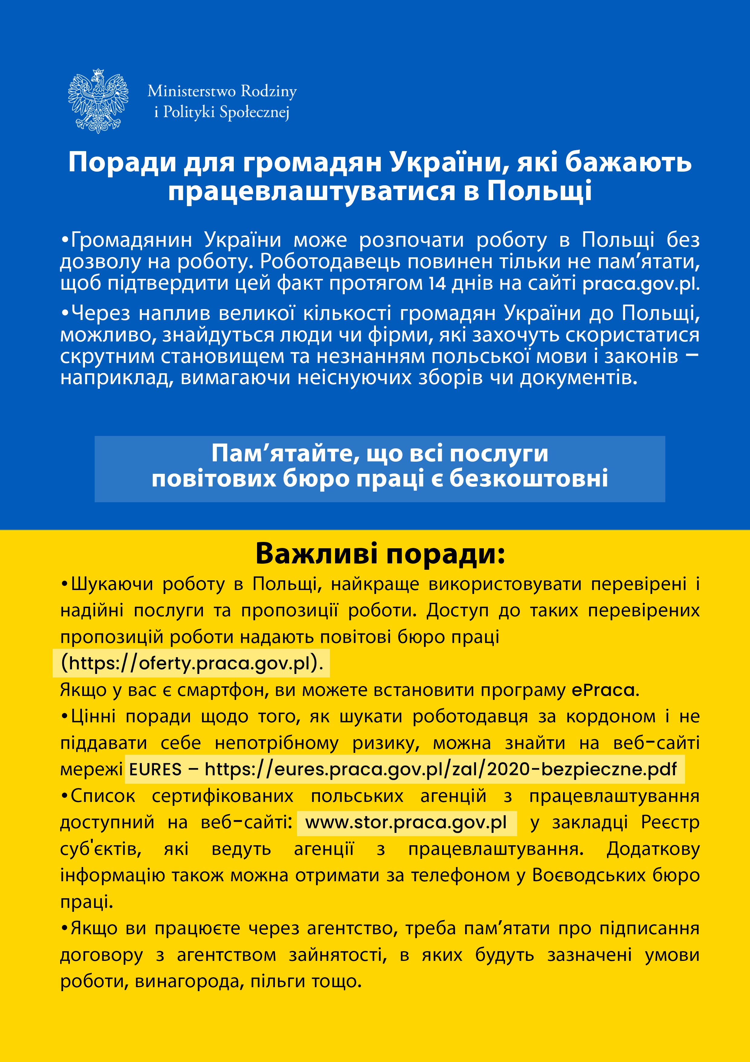 - Rady dla obywateli Ukrainy zainteresowanych pracą w Polsce